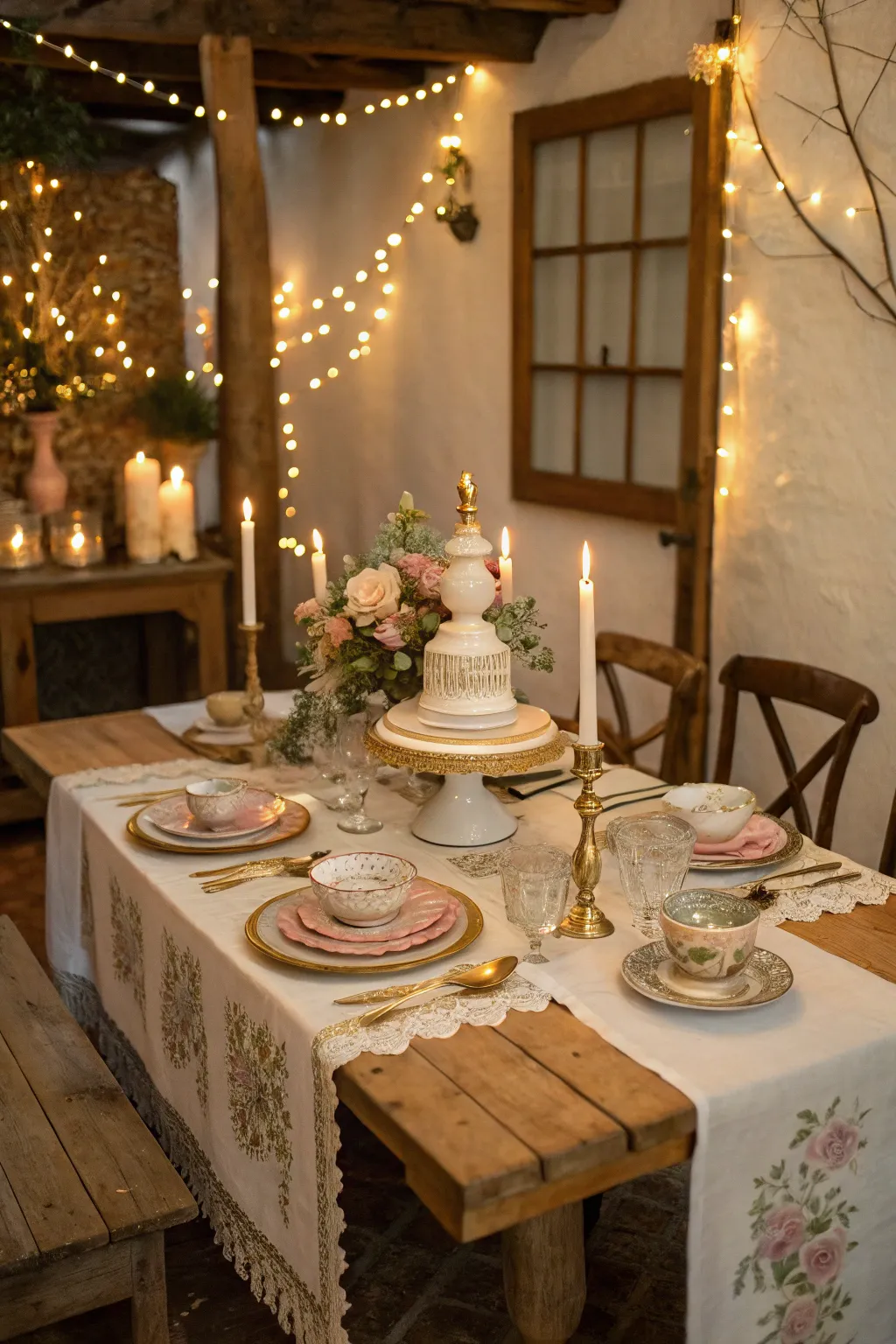 - Floral lace tablecloth: Enhance your table setting with a charming floral lace tablecloth perfect for a nostalgic theme.