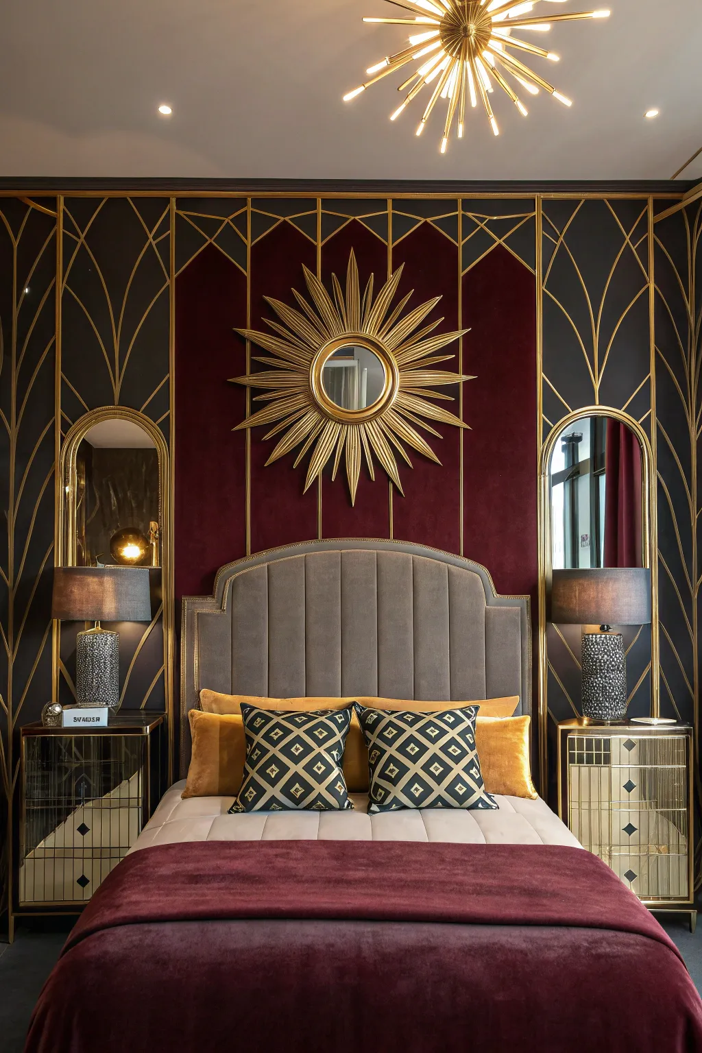 Sunburst designs are quintessentially Art Deco, whether in mirrors or headboards. They radiate a sense of energy and style, a nod to the era’s fascination with the future.