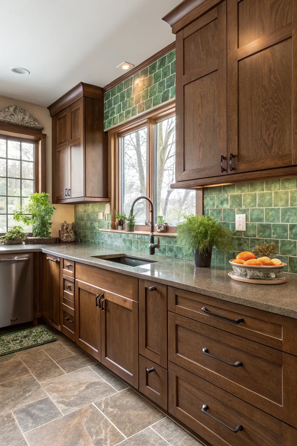 For a more organic feel, consider an earthy green backsplash. It pairs beautifully with brown tones and brings a touch of nature indoors. 🌿 #GreenDesign #NatureInspired