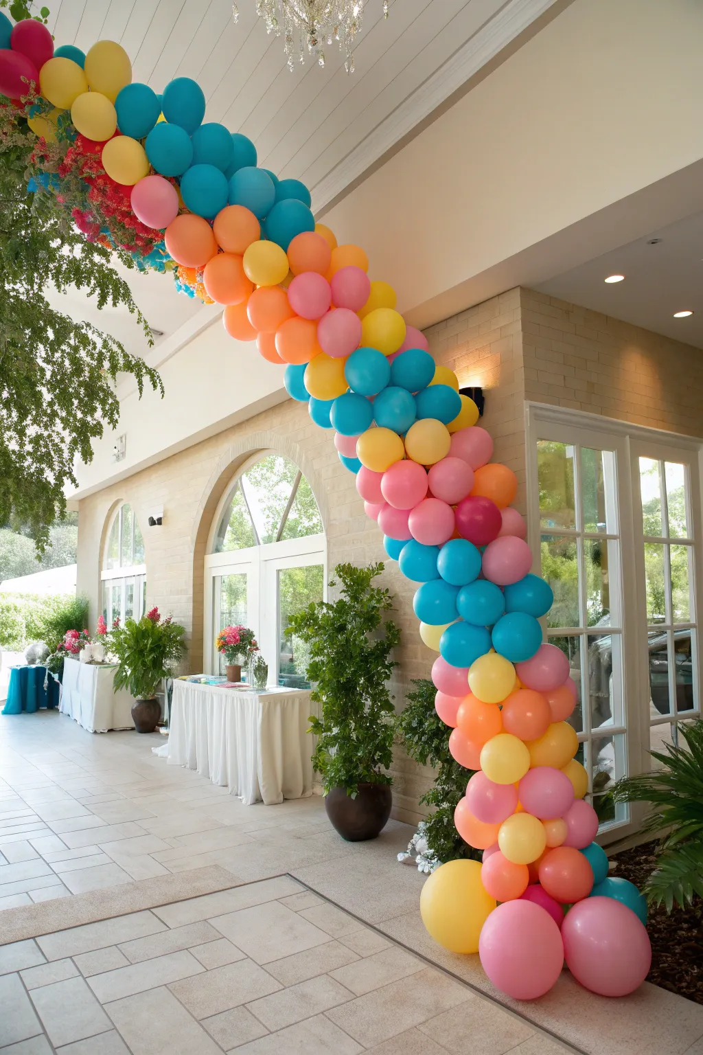 Imagine a balloon arch in soft pastel shades of pink, blue, and mint green. From my experience, these colors create a serene and welcoming atmosphere perfect for a baby shower.