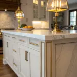 Choose elegant hardware to elevate your bar closet’s look. I often opt for brass or antique bronze to add a touch of timeless elegance.