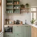 • Rustic Wooden Shelves: Add rustic wooden shelves for an eclectic touch, perfect for displaying glassware and decor.