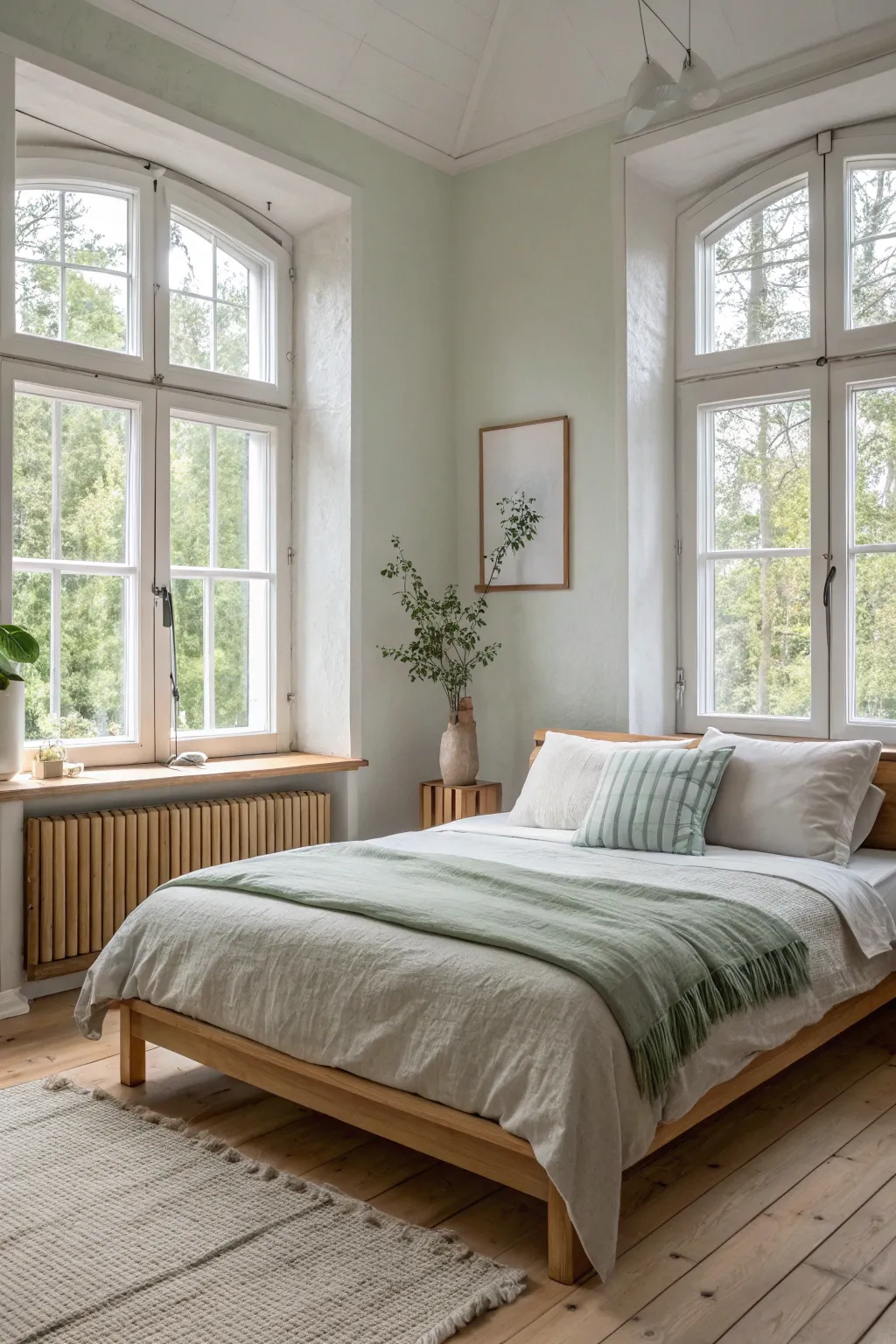 Achieve a balanced look with a symmetrical bed placement under the window, creating harmony and style.