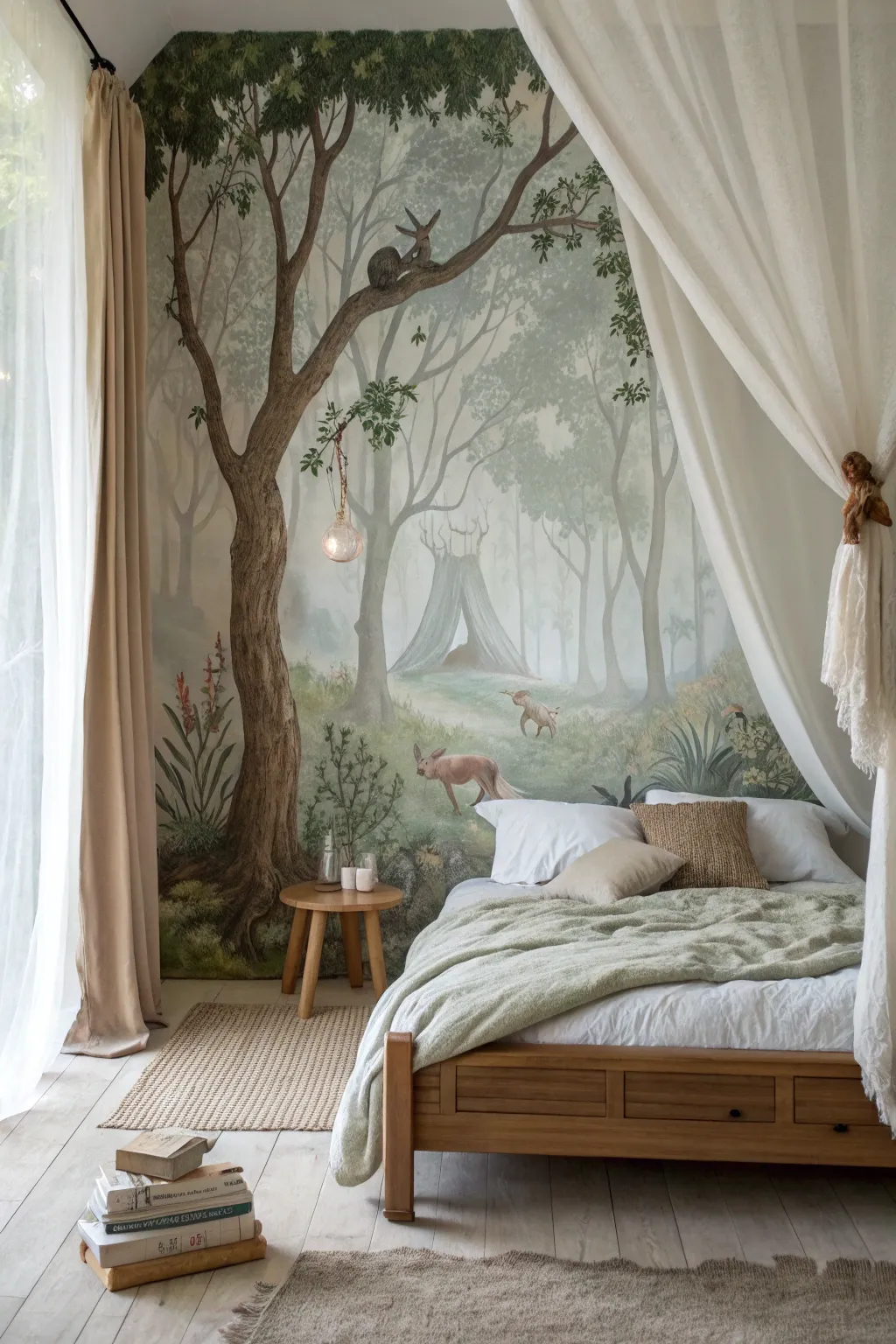 Imagine waking up to a lush forest scene every morning. A mural like this not only adds depth but also creates a calming, retreat-like atmosphere.
