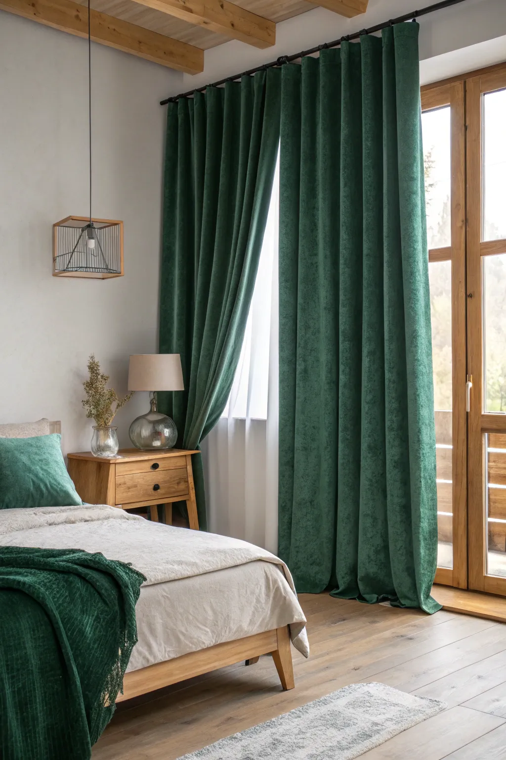 - Velvet Forest Green Drapes: Enhance your bedroom’s appeal with forest green velvet drapes for a timeless, sophisticated look.