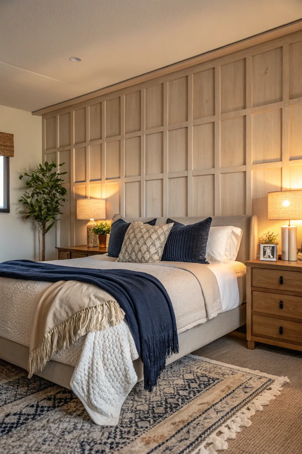 - Neutral Tone Bedspread: Complement your board and batten walls with a chic, neutral tone bedspread.