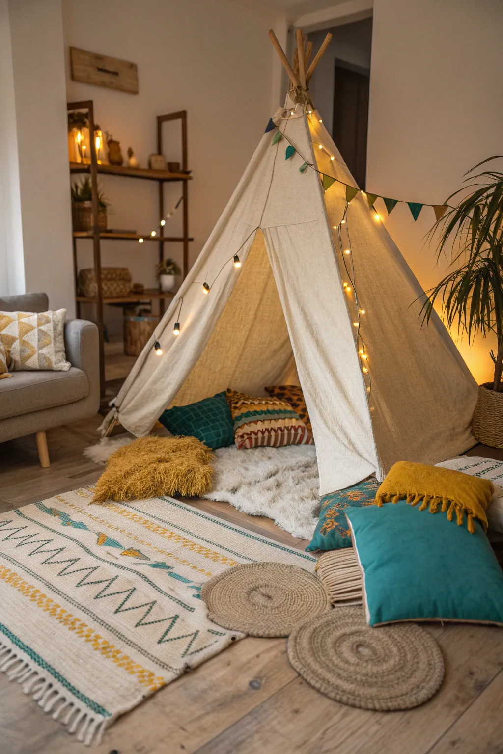 Escape to a whimsical world with a cozy boho tent hideaway.
