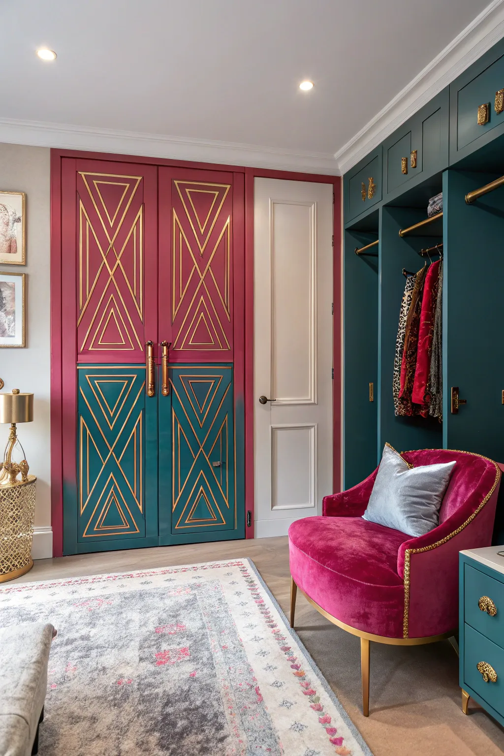 Make a bold statement with a dynamic color-blocked closet design. 🌈