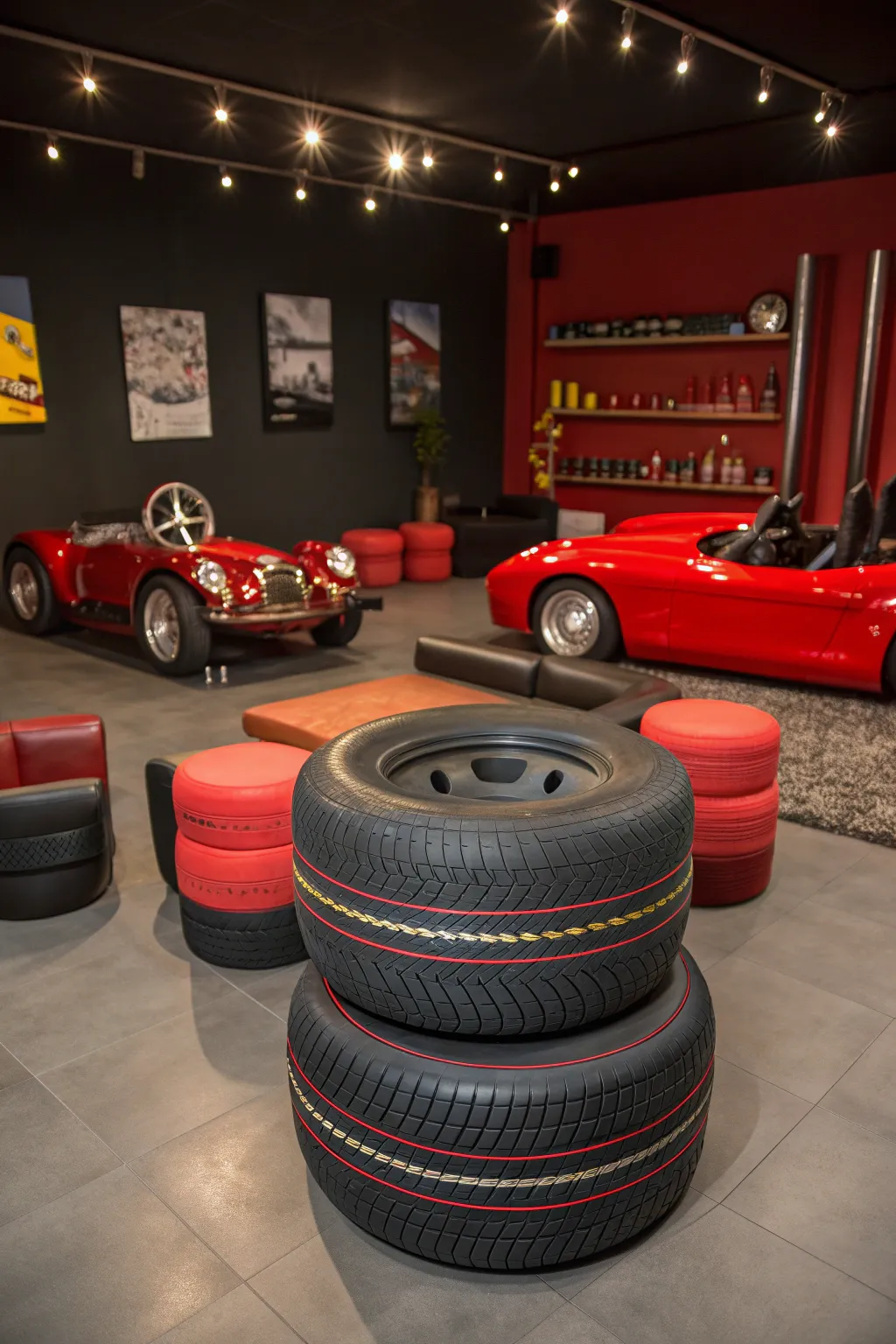 - Tire Ottoman Footrest: Relax in style with a tire-shaped ottoman, an excellent addition to a car-inspired decor.