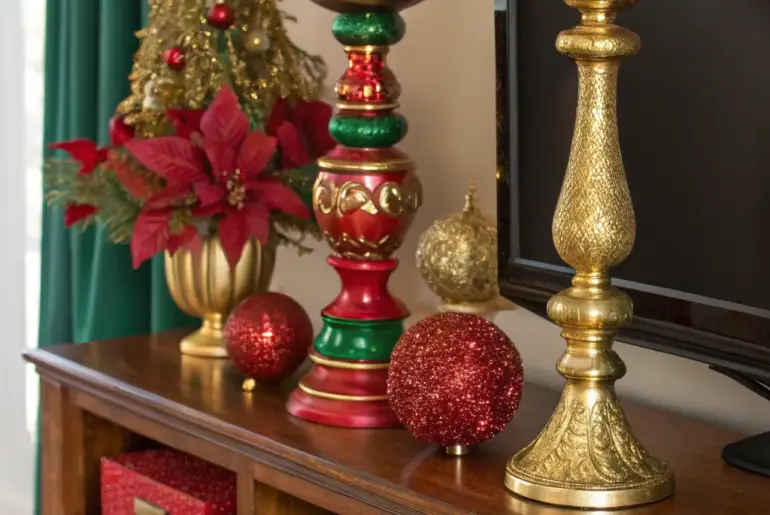 The holiday season is a time to transform every corner of your home into a festive retreat, and the TV stand is no exception. Let’s dive into some creative and charming ways to dress up this often-overlooked space for Christmas. Candlelit Warmth Embrace the warmth of candlelight with LED candles, creating a safe and cozy holiday ambiance. Add candles of varying heights to your TV stand for a warm, inviting glow. I prefer LED candles…