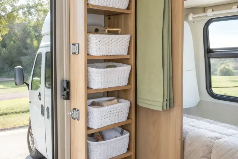 Living in a camper van doesn’t mean sacrificing style or comfort; it’s all about smart storage solutions. Join me as I share some of my favorite tips to keep your van neat, functional, and oh-so-cozy. Hidden Under-Bed Storage Discover the secret to extra storage with under-bed drawers. Ideal for keeping bedding and larger items out of sight. Slide-out drawers beneath the bed are a dream for stashing away bulky items. It’s a trick I’ve used…