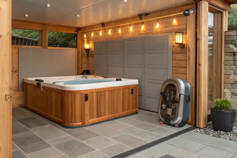 Ever thought about turning your garage into a cozy retreat with a hot tub? It’s a brilliant way to make the most of your space and enjoy some well-deserved relaxation right at home. Install Ambient Music Enhance your spa experience with soothing sounds from a built-in sound system. Set the mood with a built-in sound system playing ambient music. It’s an easy way to enhance your relaxation experience. Products that could assist: Wireless Outdoor Speaker…
