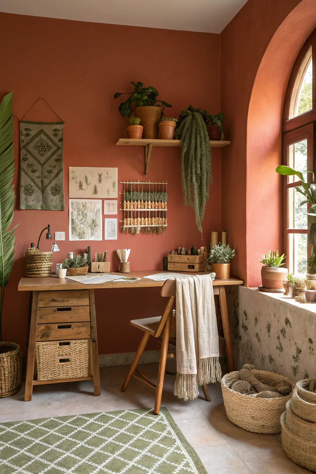 - Terracotta Wall Paint: Revitalize your crafting area with cozy terracotta shades, enhancing warmth and tranquility instantly.