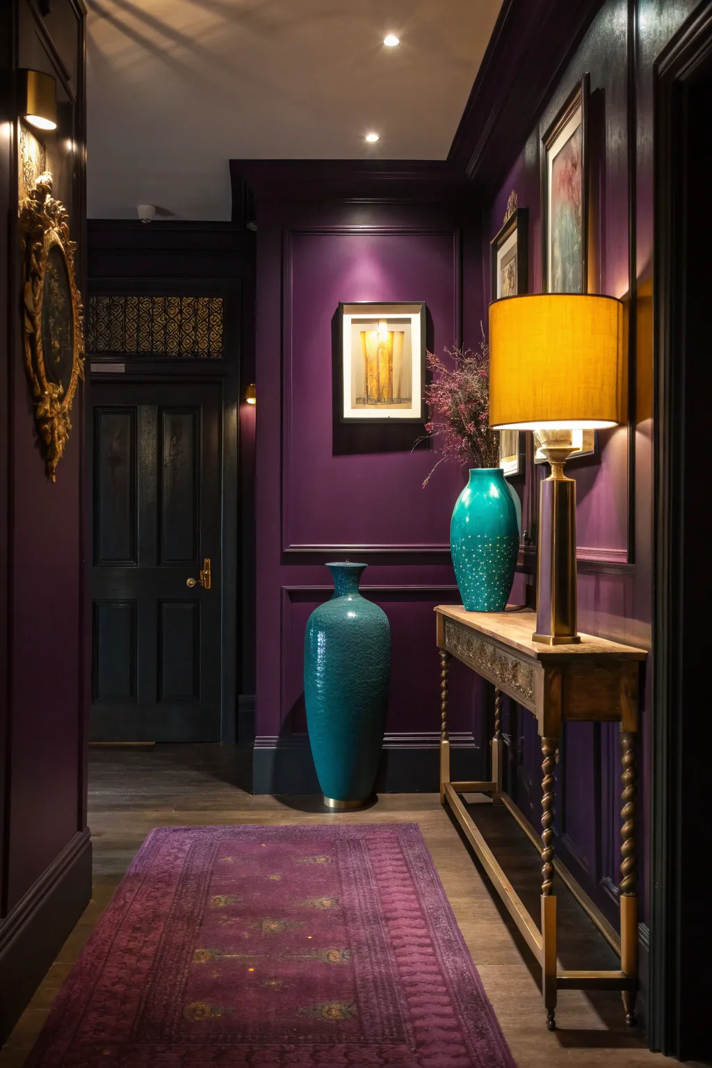 - Moody Purple Wall Paint: Transform your hallway with moody purple paint for a regal and unforgettable atmosphere.