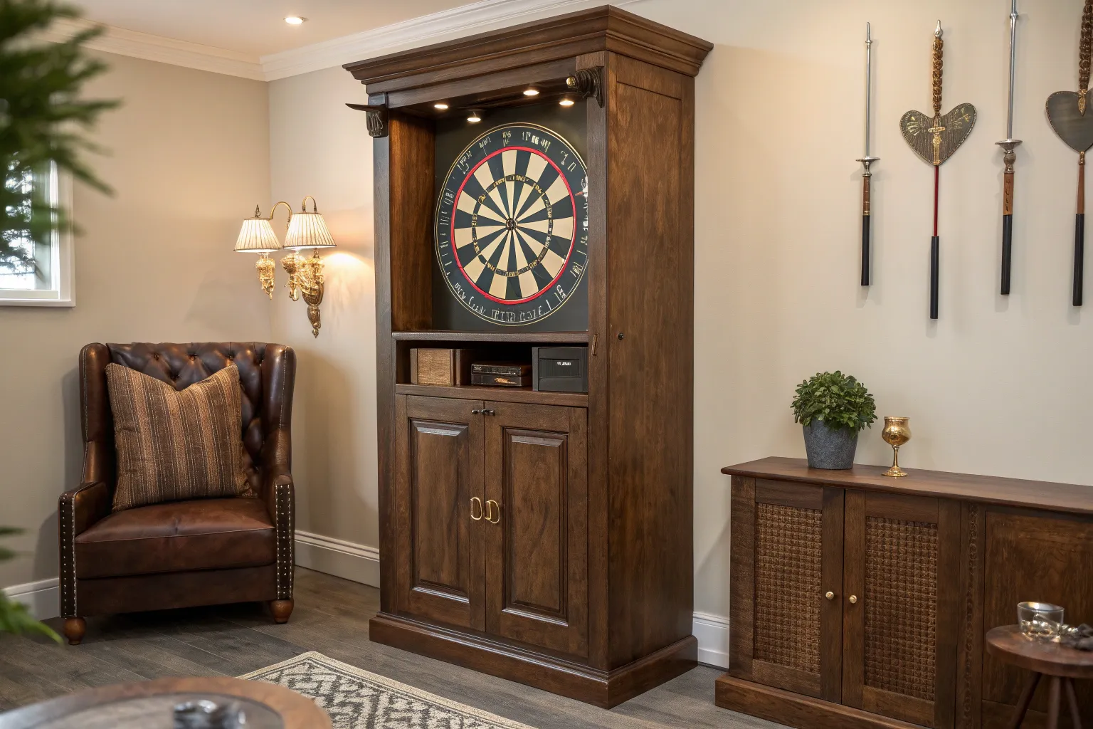- Wood Dart Board Cabinet: Enhance your game room with this elegant symmetrical cabinet for a balanced decor touch.