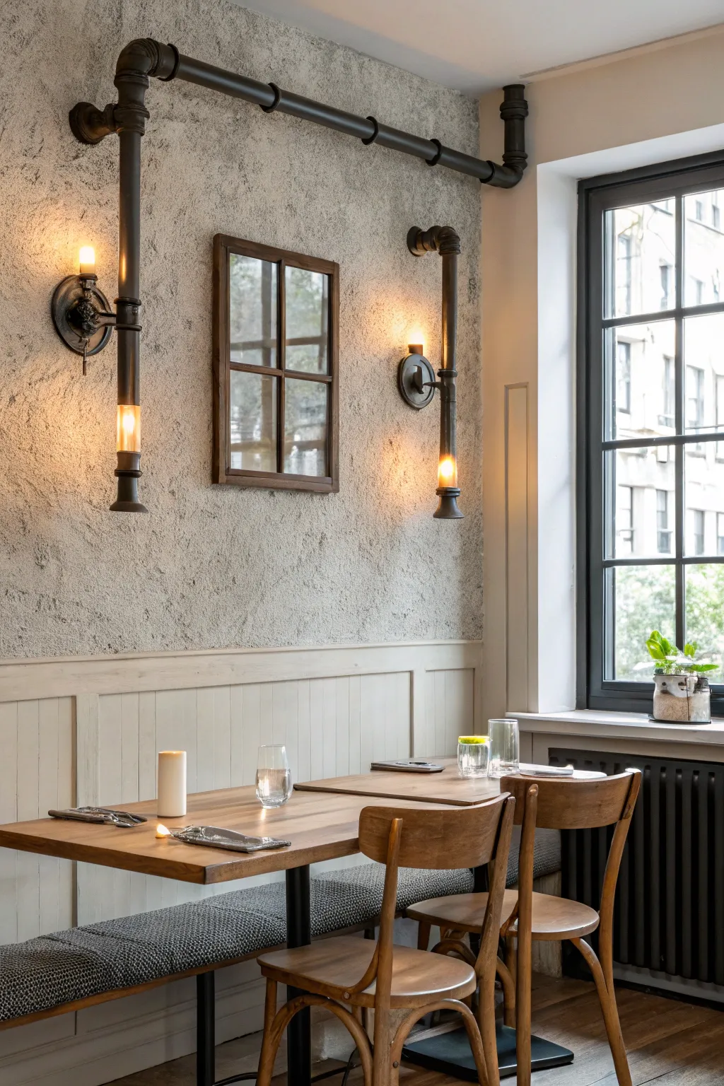 - Industrial Pipe Wall Sconce Lighting: Add an urban touch with industrial pipe sconces; perfect for loft-style dining atmospheres.
