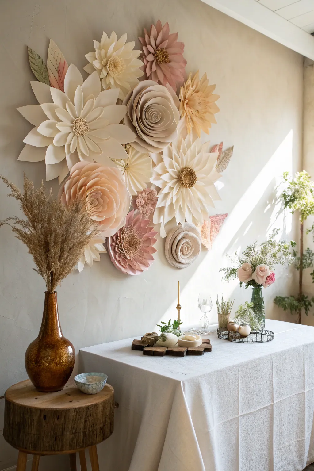 - Decorative Paper Flower Backdrop: Transform any space elegantly with a decorative paper flower backdrop for events.
