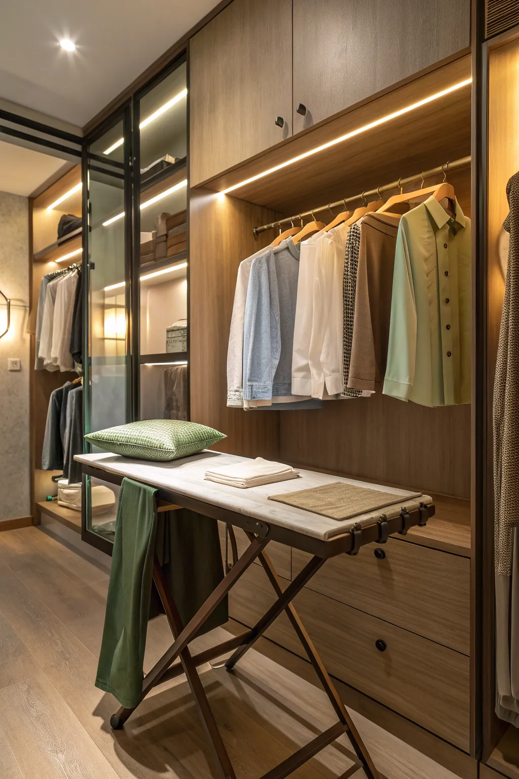 - Slim folding table: Maximize closet space with this slim folding table, fitting perfectly between clothes.