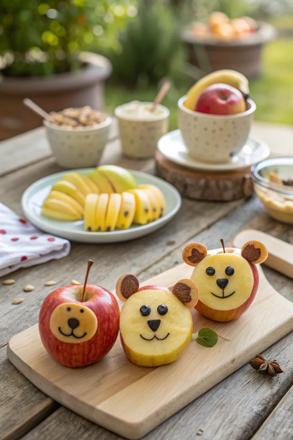 Create charming animal faces using fruits like apples and bananas. It’s a fun way to bring a playful touch to your dining table, and trust me, kids love it!