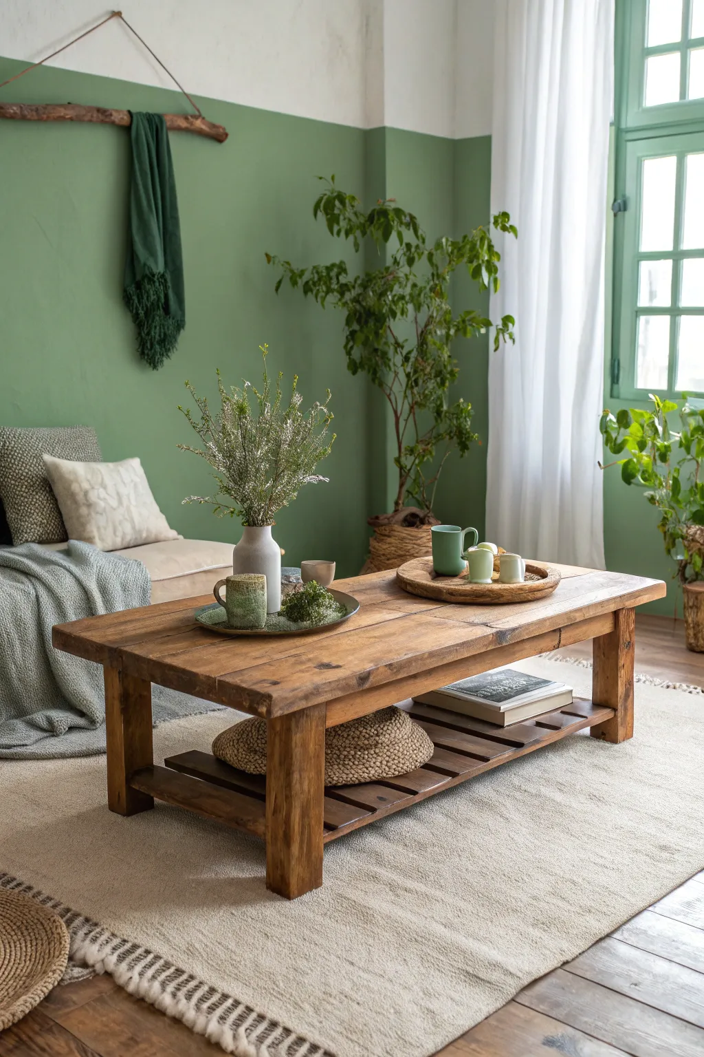 Natural materials like wood and stone breathe life into any room. I love pairing my green decor with a rustic wooden coffee table—it adds warmth and an organic touch.