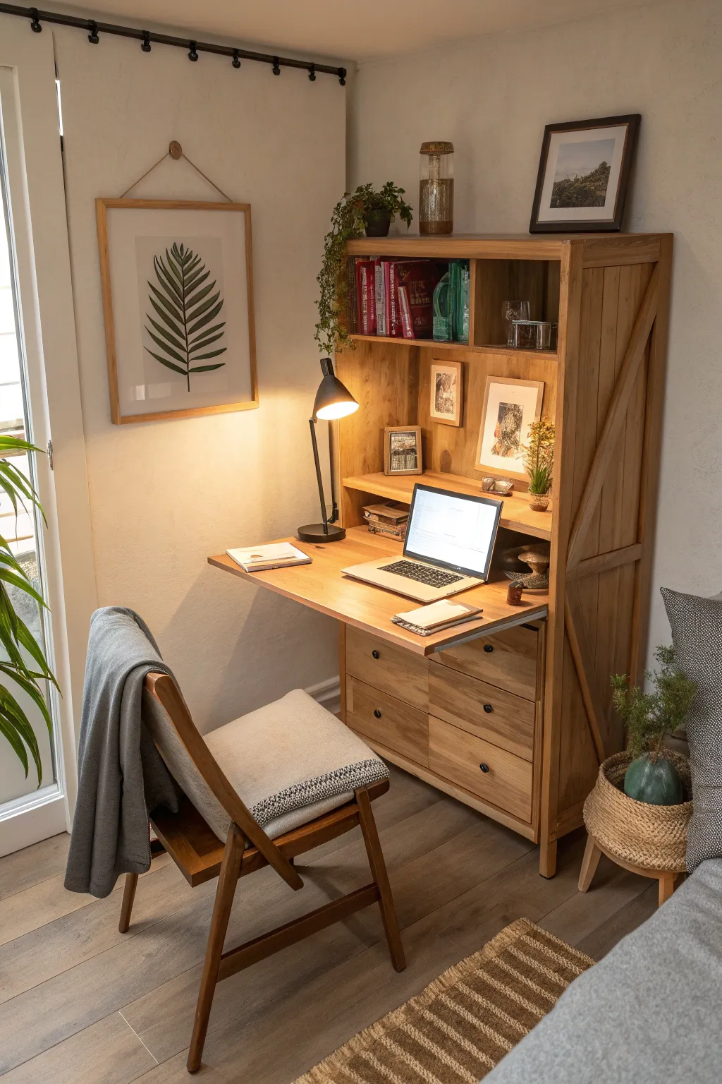 A cabinet desk can be hidden in plain sight, looking like a regular piece of furniture until you open it up. This is a favorite in my designs for its seamless integration. 🎨🖨️
