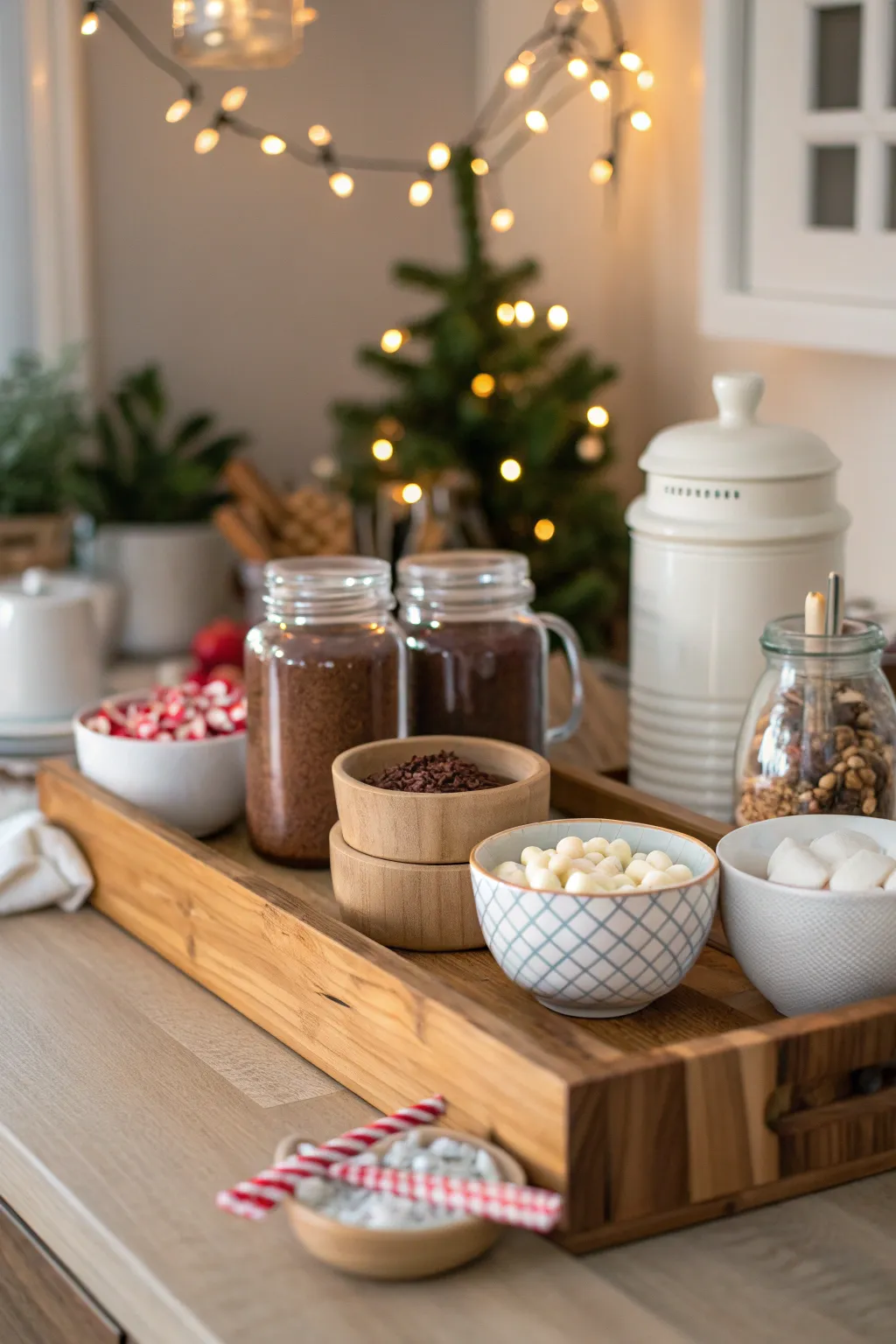Use warm lighting to create an inviting glow around the cocoa bar. It’s a simple trick that instantly adds warmth and coziness.