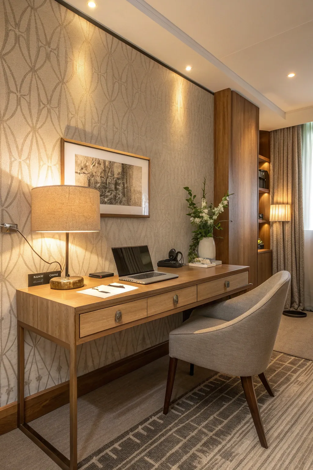 Install floating desks to save space and add a modern touch. These are perfect for small rooms or creating a seamless work area.