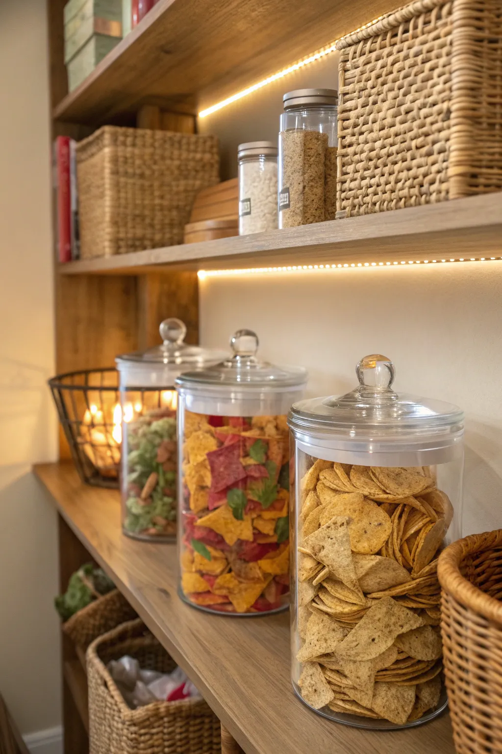 • Glass Storage Jars: Store snacks in glass jars to keep them fresh while giving your pantry a tidy appearance.
