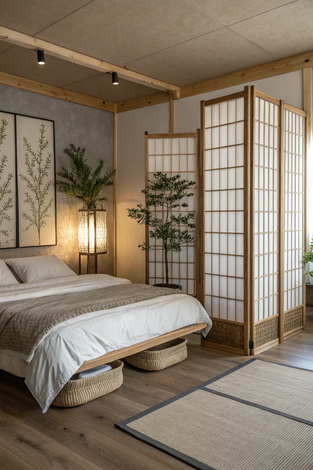 - Folding Shoji Screen: Add elegance to your bedroom with a folding shoji screen, creating a serene environment.