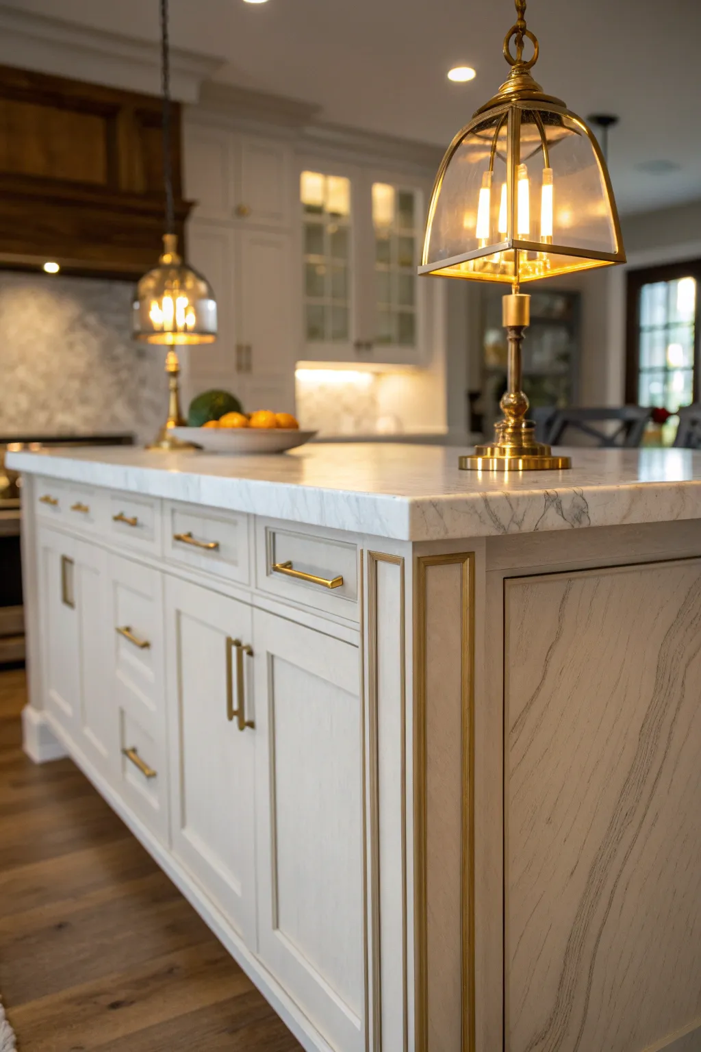 - Brass Pendant Light Fixture: Illuminate your kitchen island with elegance using a stylish brass pendant light fixture.