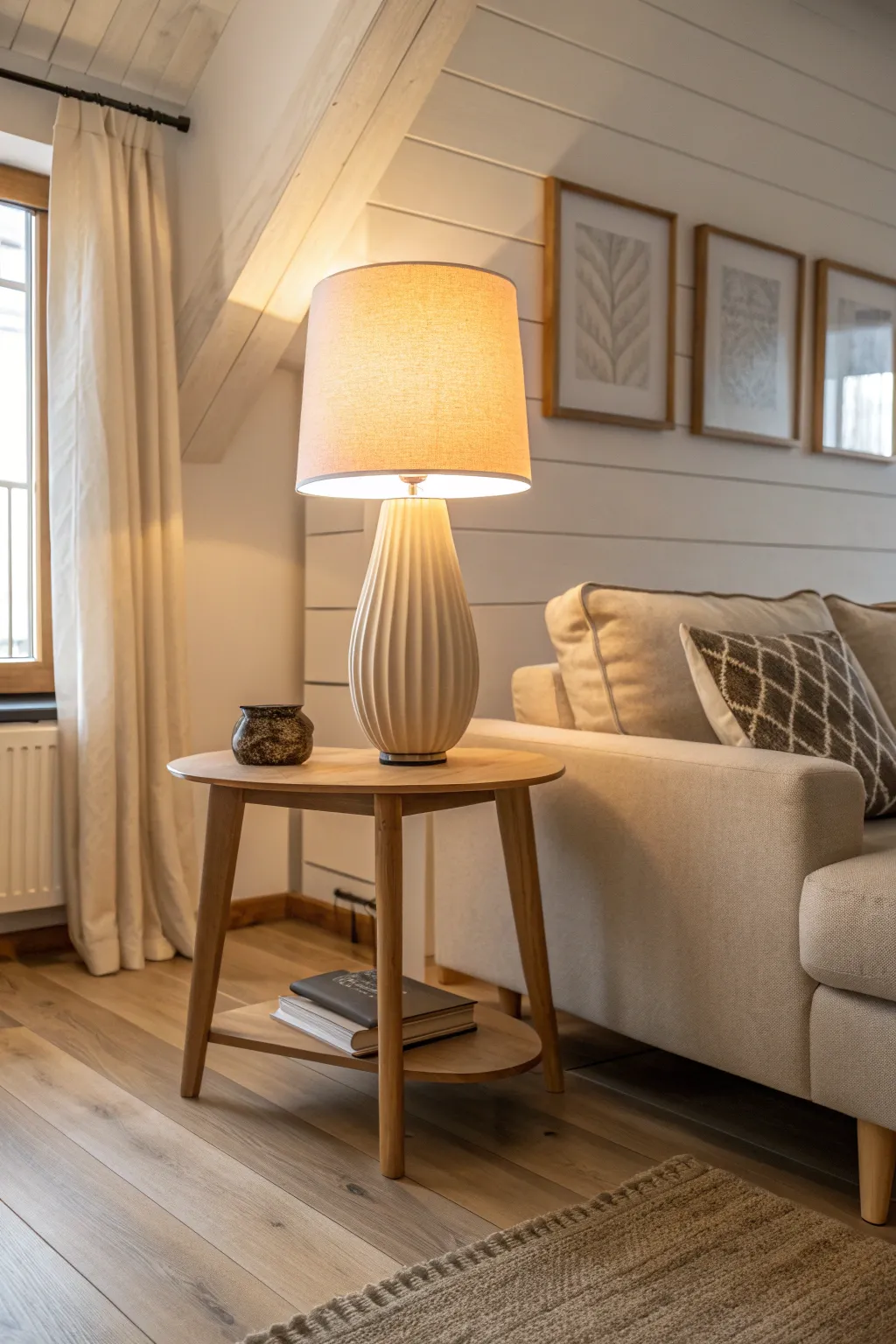 Combining overhead lighting with table lamps can create a cozy ambiance. I find that warm-toned bulbs work best with light wood floors.