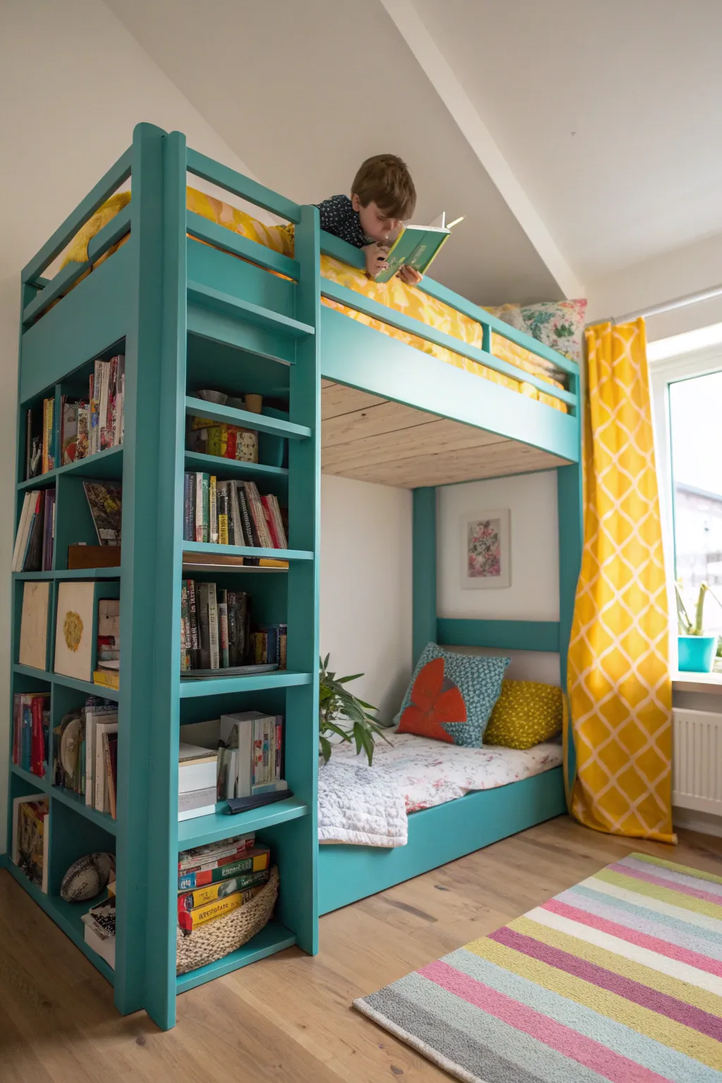 A built-in bookshelf under the loft bed is perfect for book lovers. It keeps their favorite stories close at hand and adds a touch of character to the room.