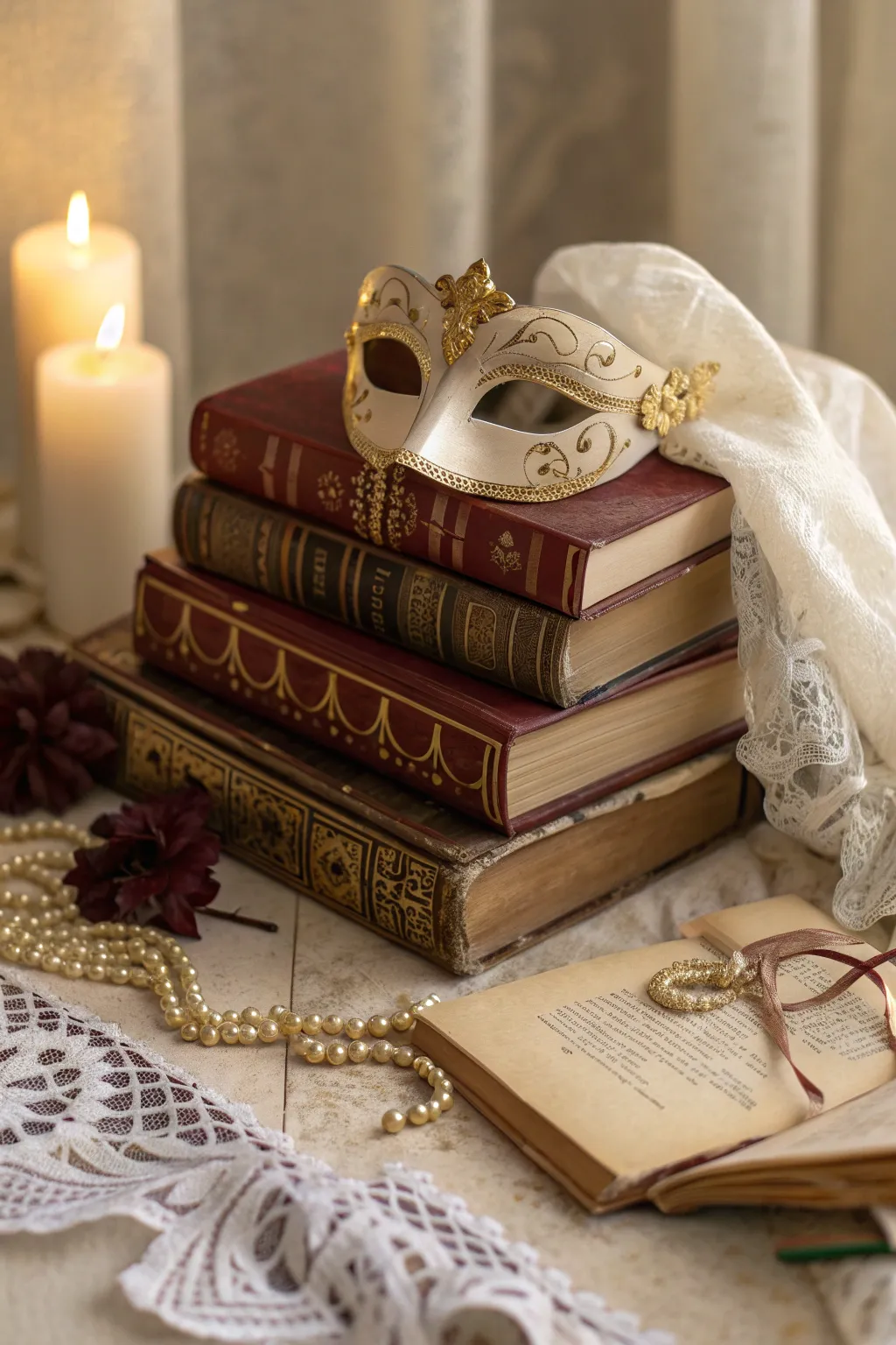Use candles to create a warm, inviting glow that complements the mystery of a masquerade. I love mixing tall and short candles for added visual interest.