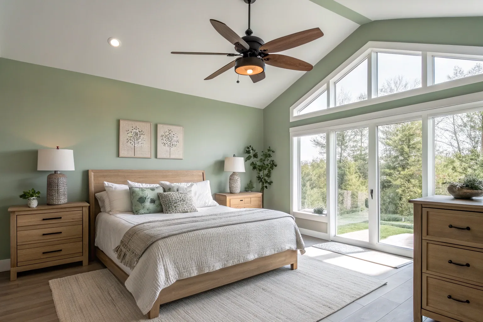 A bamboo ceiling fan can add a touch of nature to your bedroom. In one of my eco-friendly designs, it brought a calming, organic feel to the space.