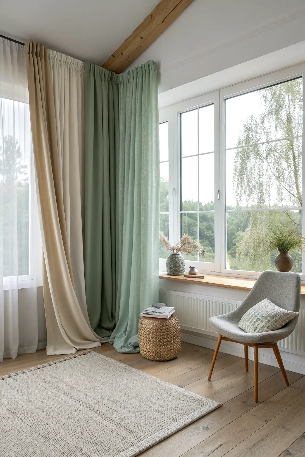 Mix different curtain styles for an eclectic look that showcases your personality. In my home, combining various fabrics and styles has created a unique and inviting atmosphere.