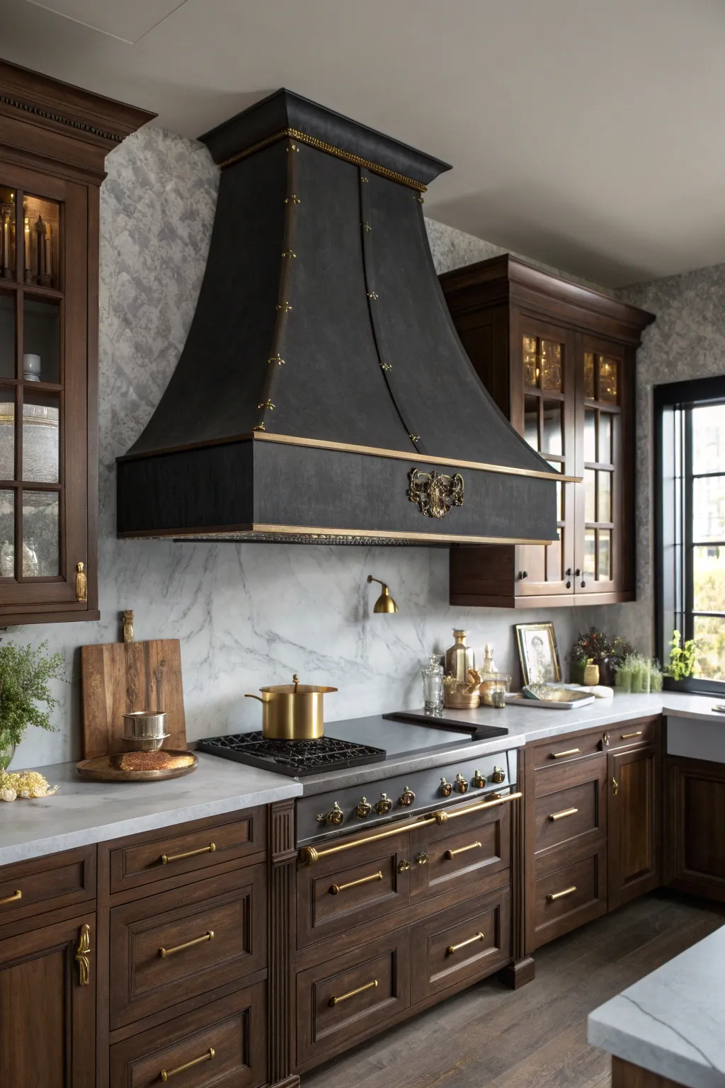 A sculptural range hood can become the kitchen’s focal point. I love how it adds drama and sophistication without overwhelming the space.