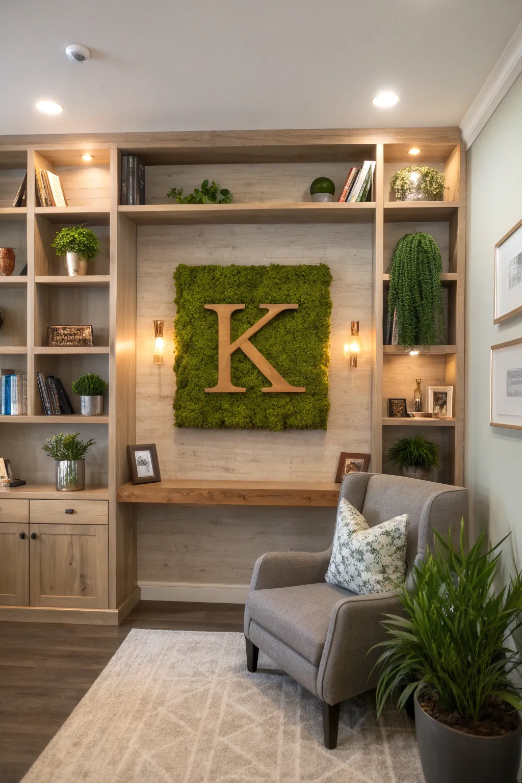Craft words or initials using moss for personalized wall art. I gifted a moss ‘K’ to a friend, and it now proudly hangs in her study.