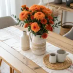 For a sustainable choice, use recycled materials like glass bottles as vases. It’s chic and environmentally friendly.