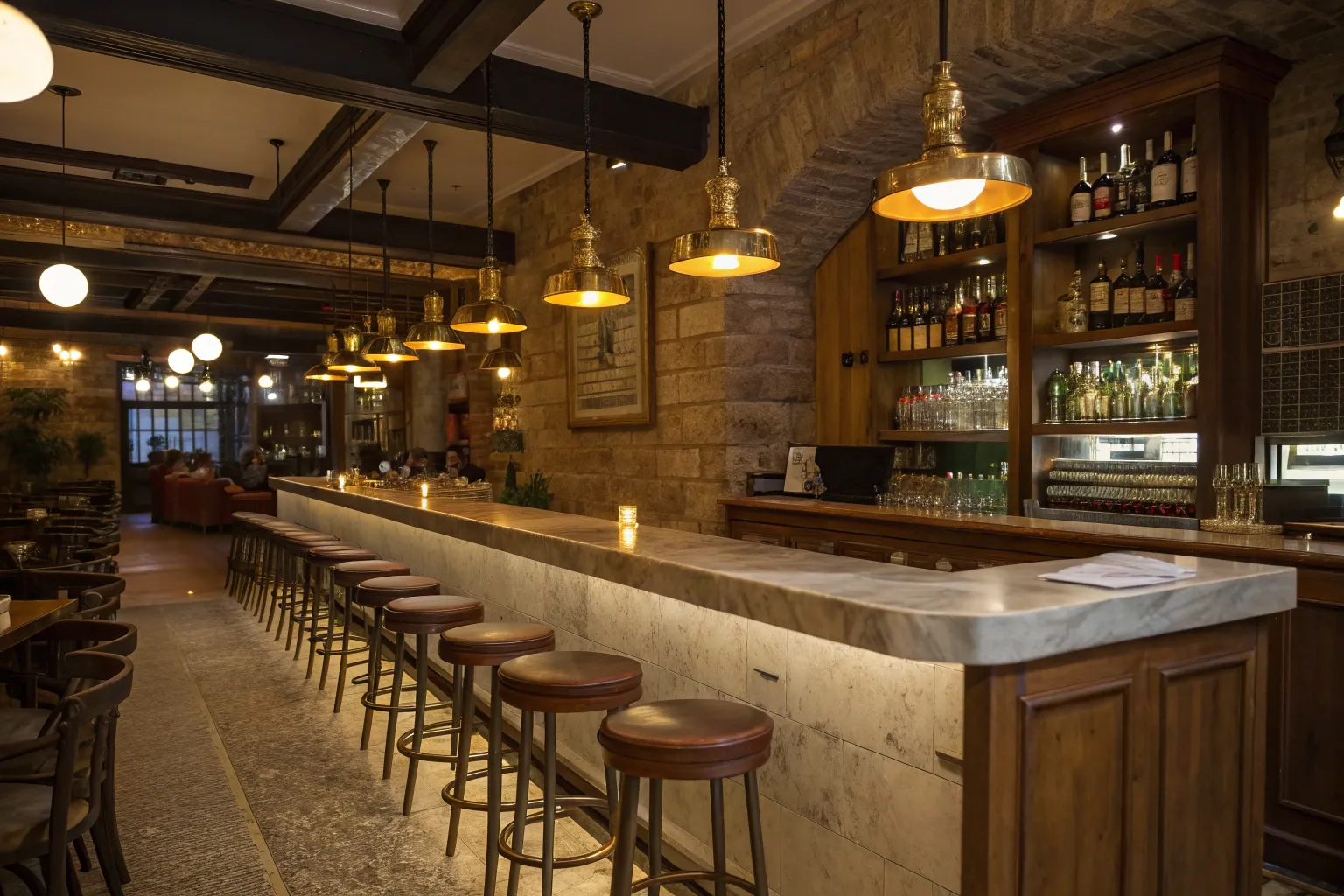 - Antique-Style Metal Pendant Lighting: Enhance your bar’s ambiance with antique-style pendant lighting for a timeless look.