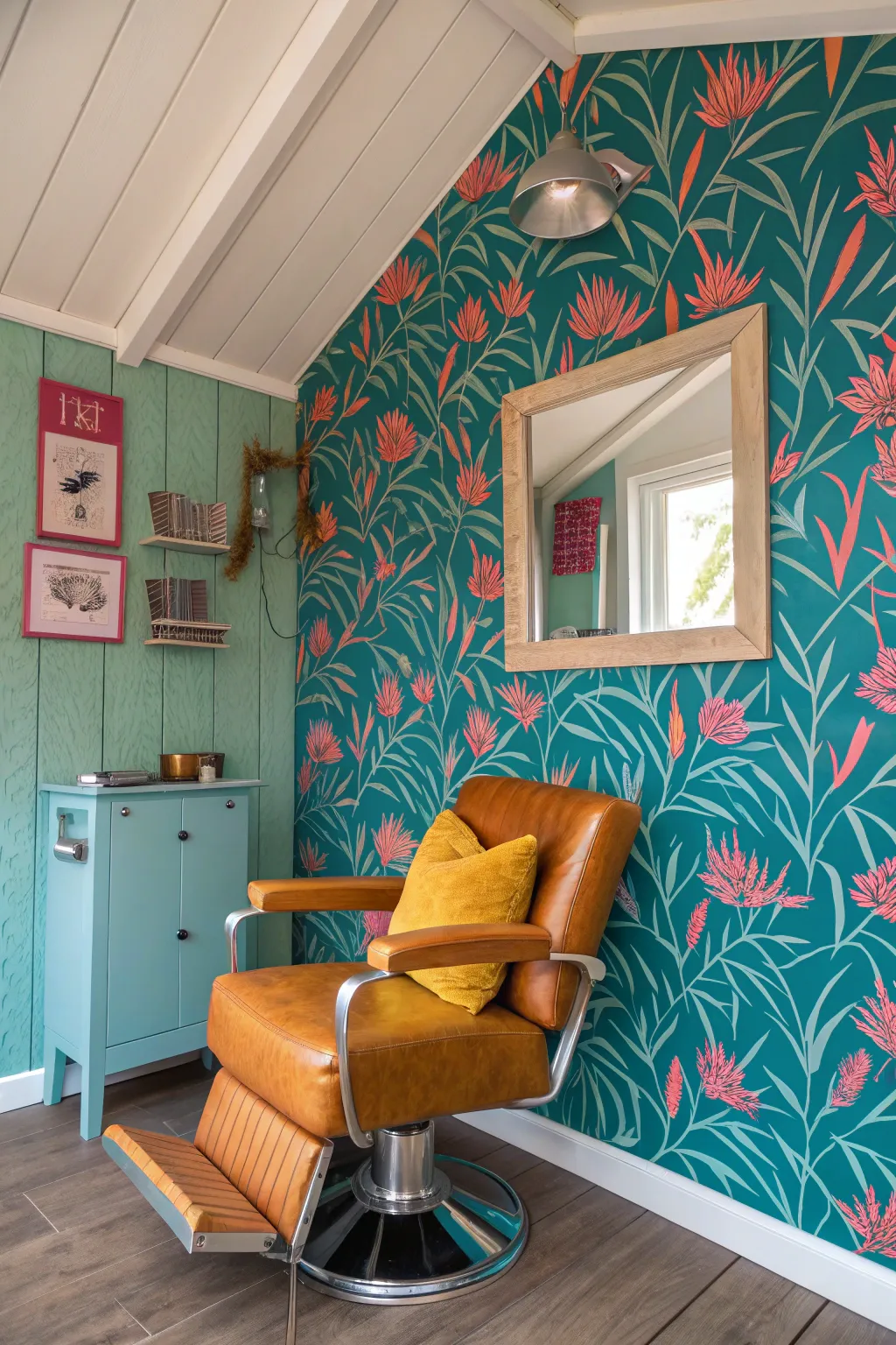 Design a feature wall using bold wallpaper or a unique paint design that reflects your personal style. This becomes a conversation starter and adds character to your salon.