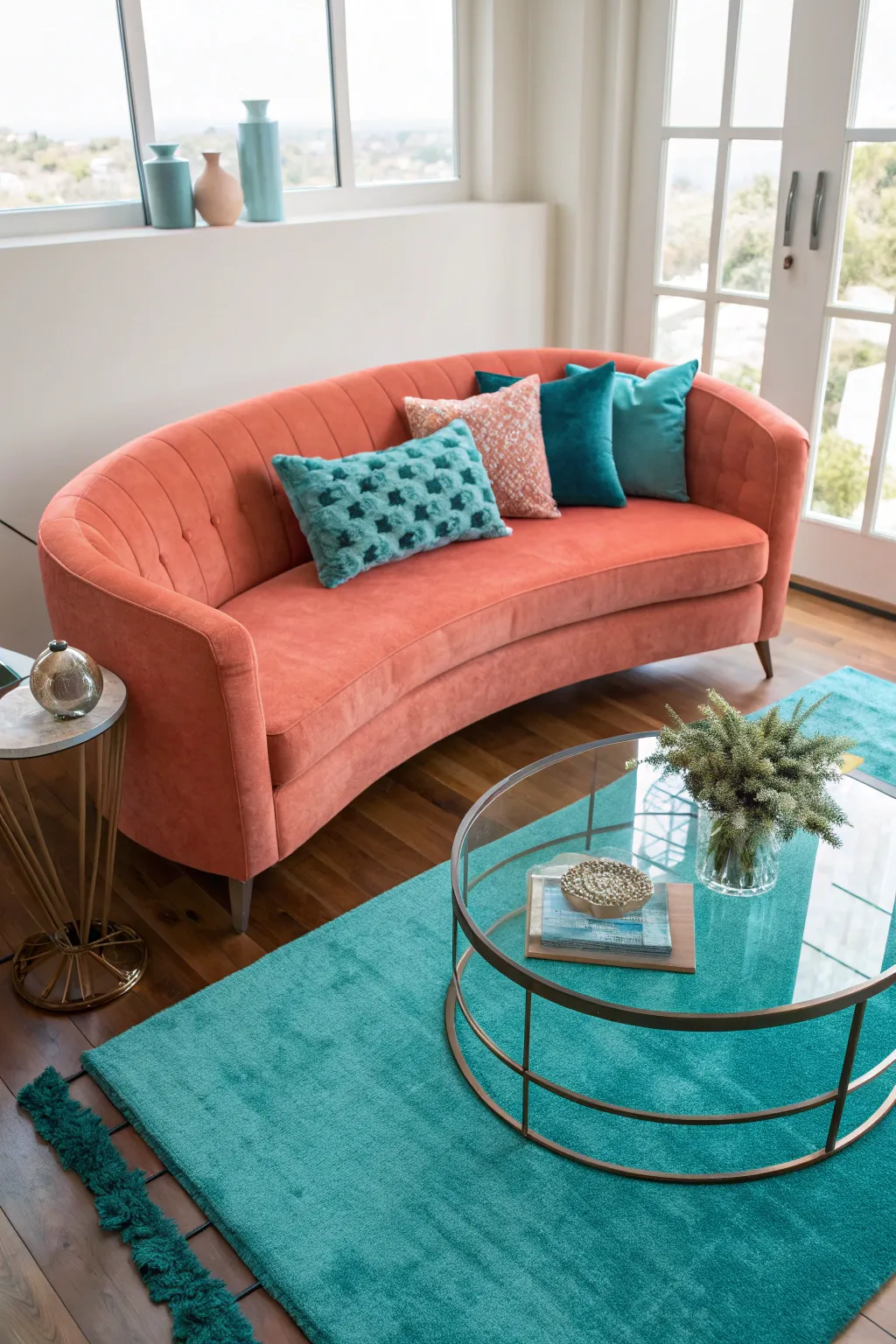 - Turquoise Wooden Coffee Table: Incorporate coastal charm with a turquoise coffee table to enhance your room’s natural light.