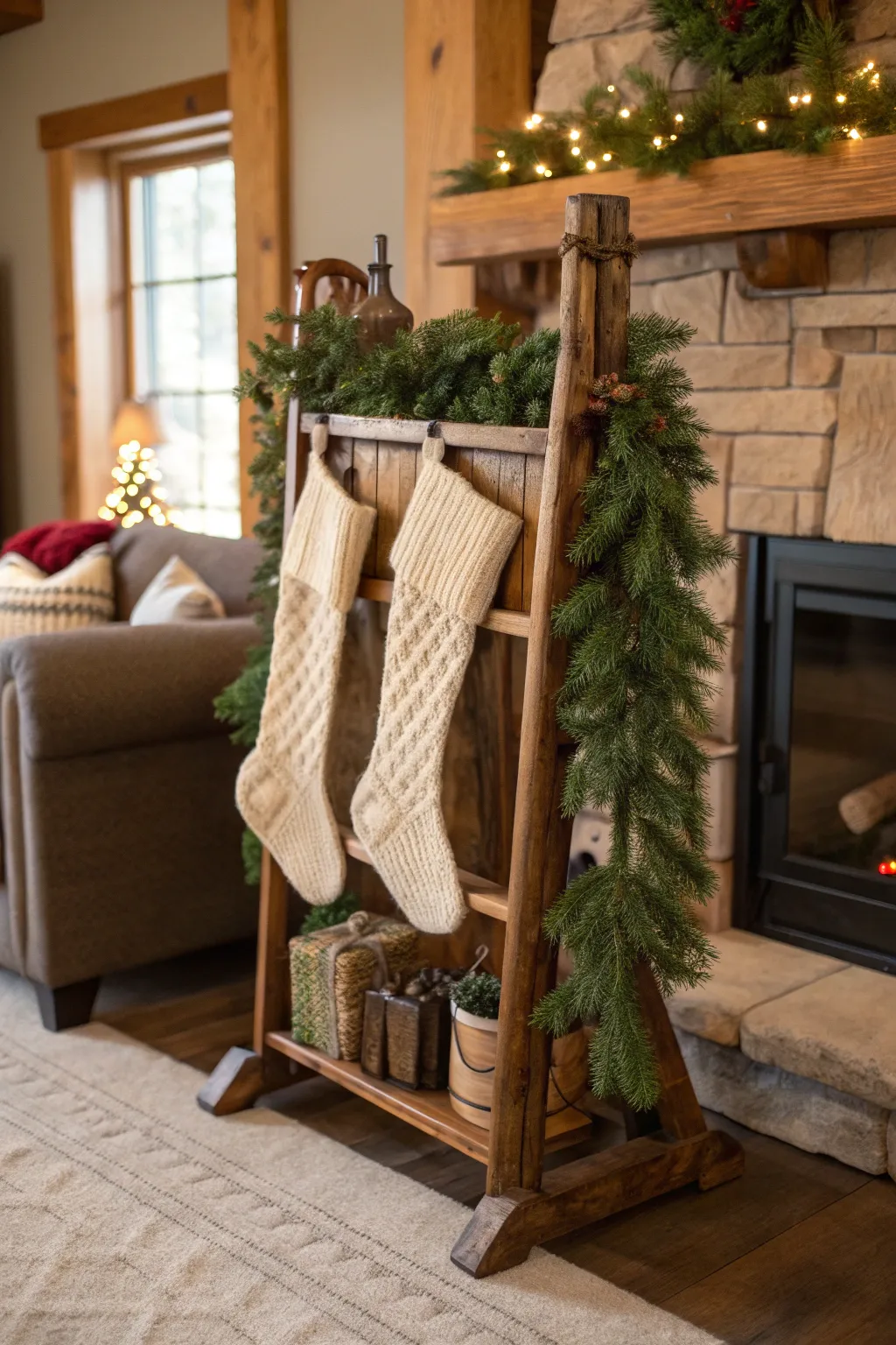 • Wooden Blanket Ladder: Add rustic charm with this wooden ladder, perfect for blankets or stockings. Cozy up your space!