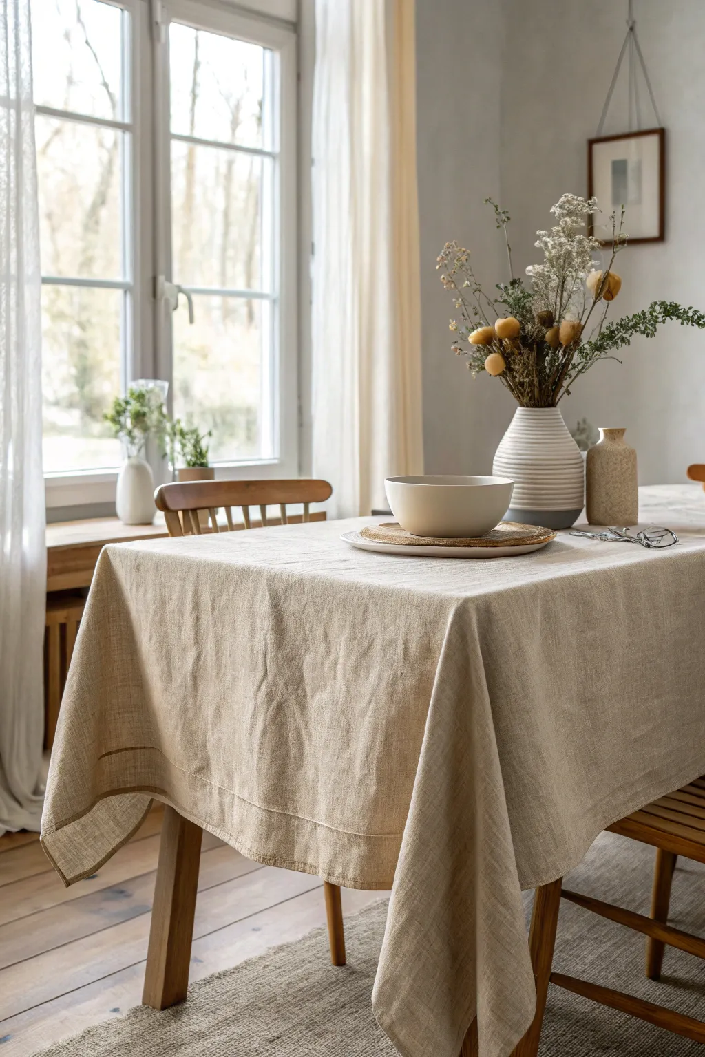 - Simple Linen Tablecloth: Enhance your dining with an elegant linen tablecloth, perfect for a minimalist aesthetic.