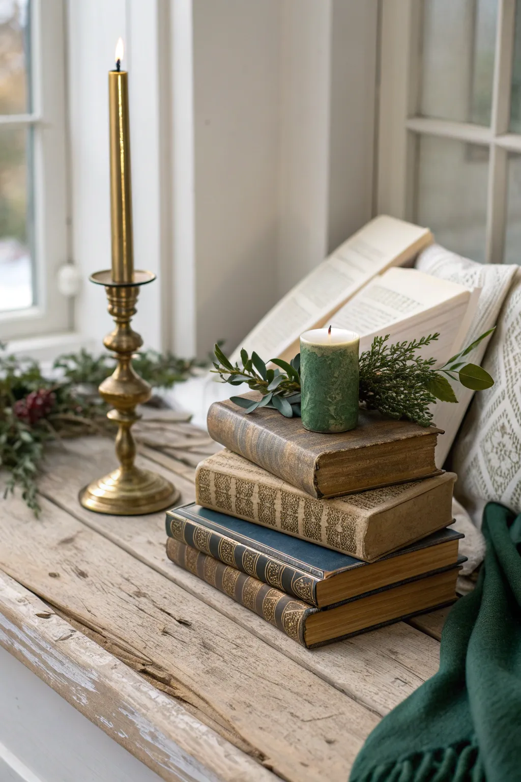 For a literary touch, stack vintage books and pair them with elegant candlesticks. It’s a charming way to add character and warmth to your table.