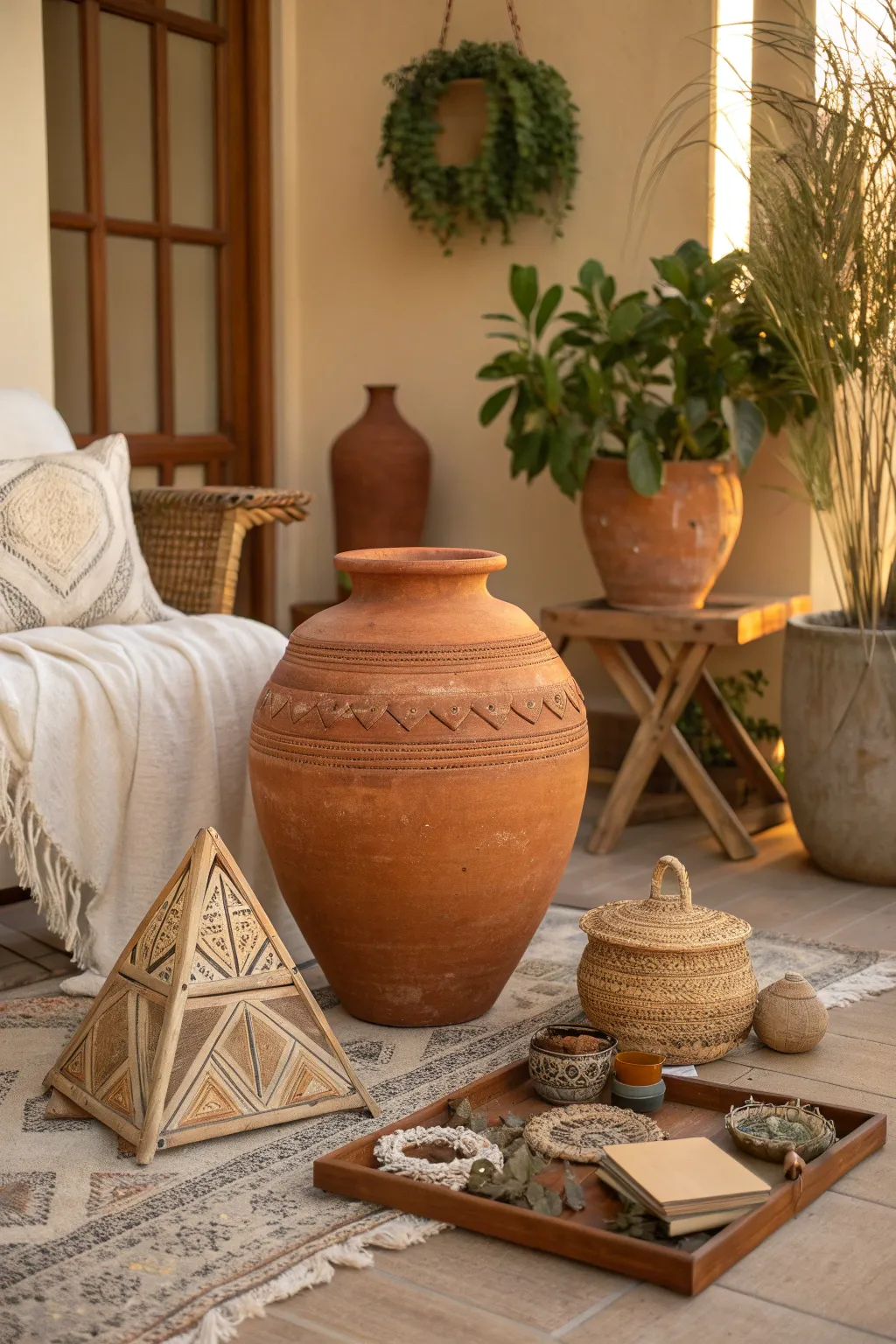 Decorate with terracotta pottery to bring a rustic charm into your living room. These pieces are timeless and add an artisanal touch that I adore.