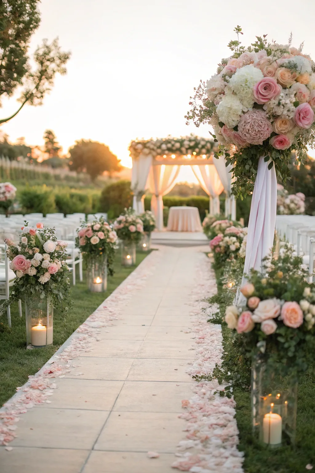 Line your aisle with floral arrangements to create a dreamy path to the altar. It’s like walking through a garden of love!