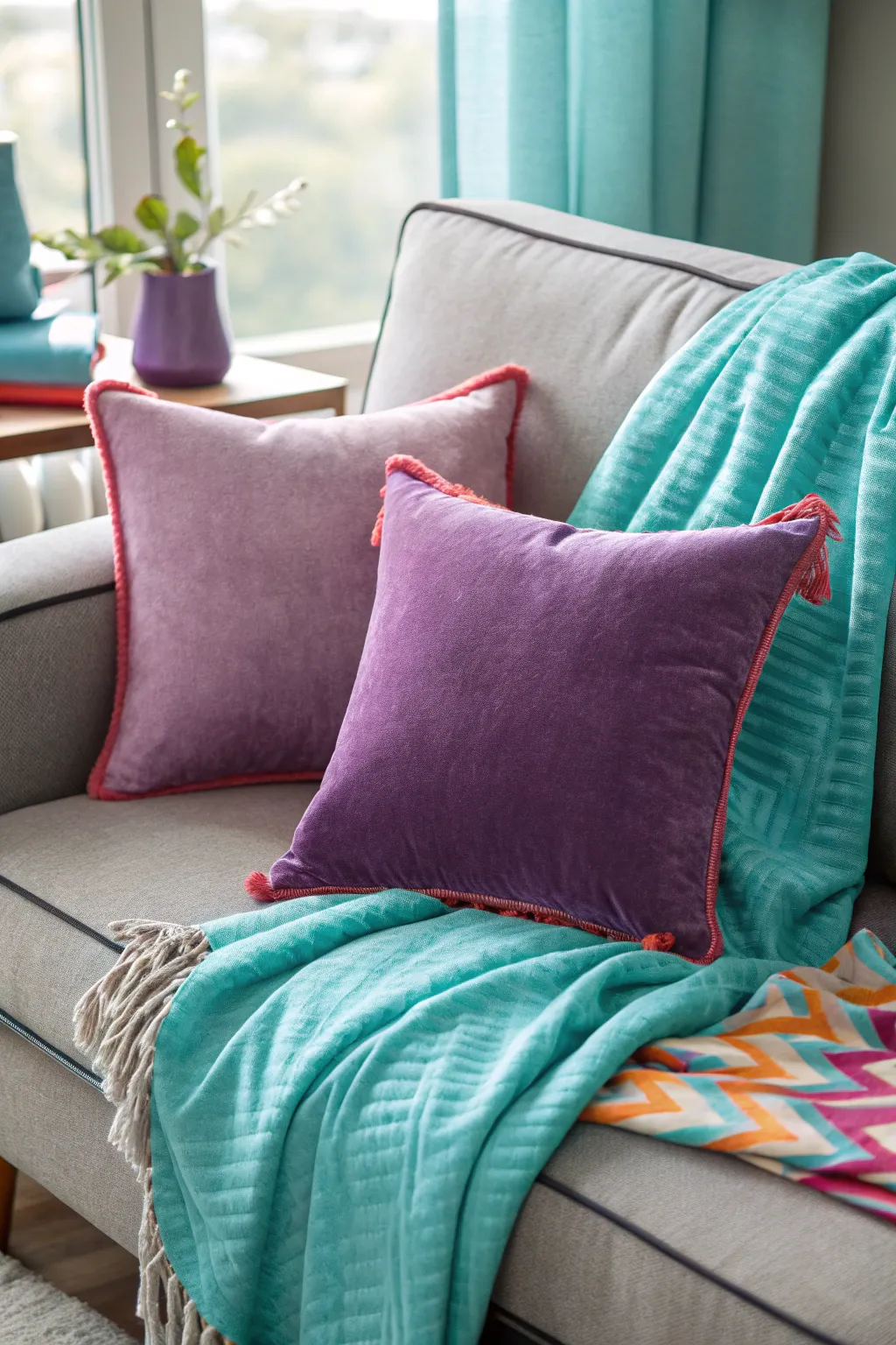 Introduce a sense of drama with burgundy pillows. They add depth and richness, perfect for cozy evenings.
