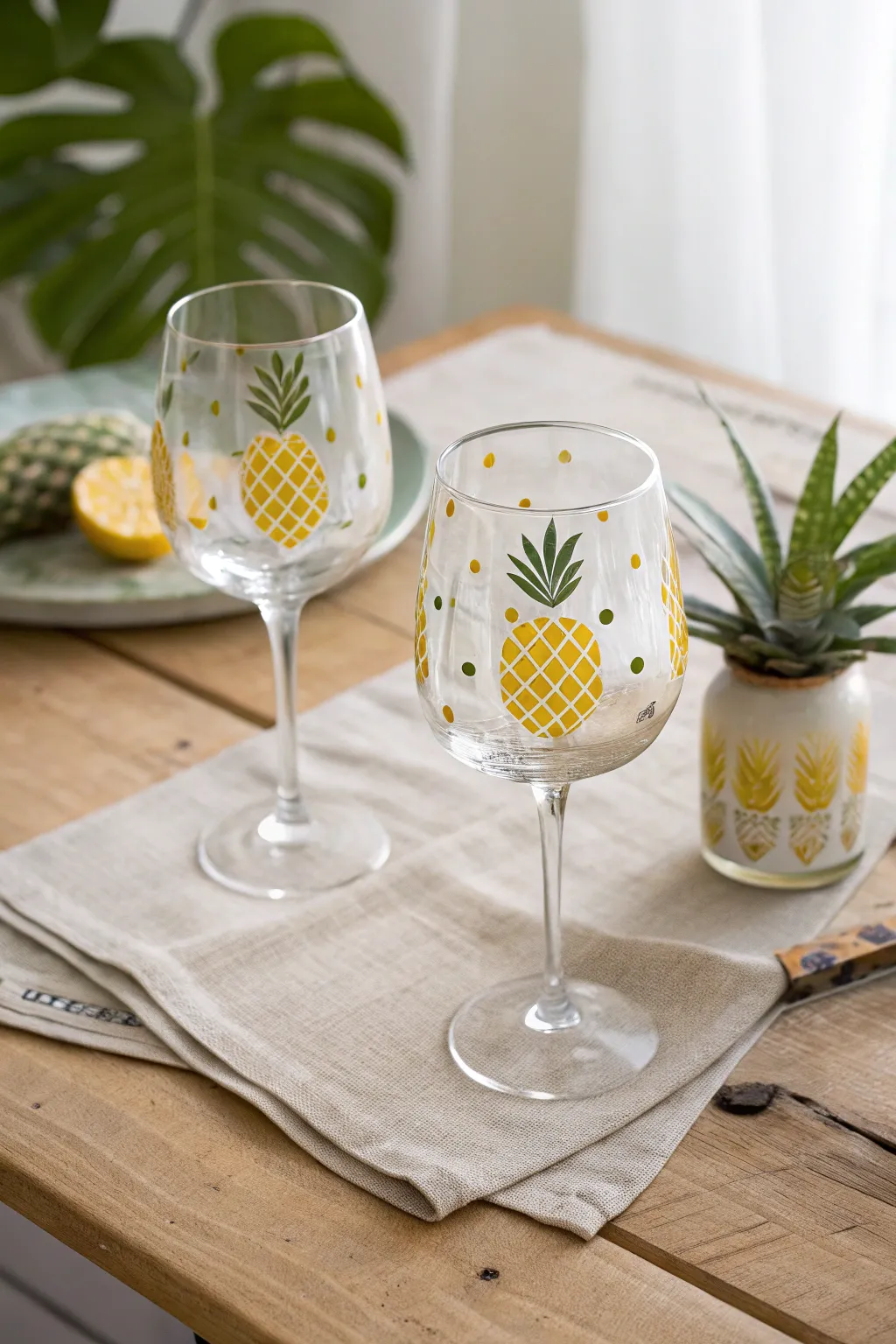 - Pineapple Wine Glasses Set: Enhance your summer gatherings with these vibrant dotted pineapple wine glasses. Perfect for entertaining!