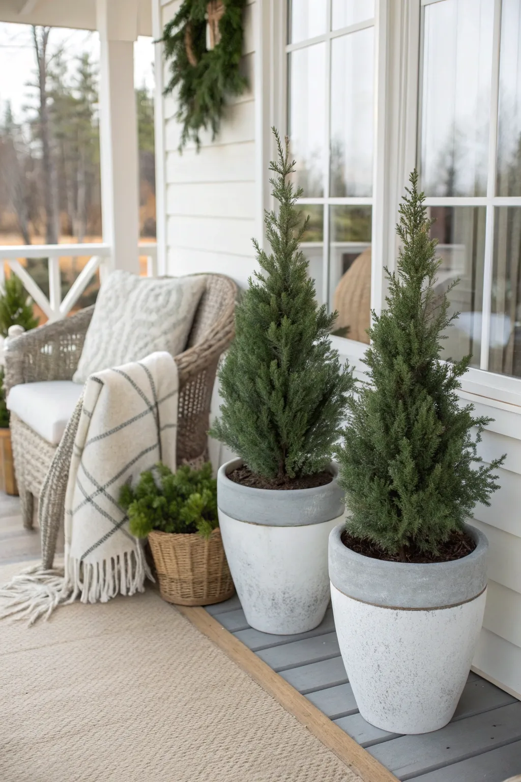 • Outdoor Evergreen Trees in Planters: Refresh your porch with pre-potted evergreens, ideal for winter charm and evergreen appeal.