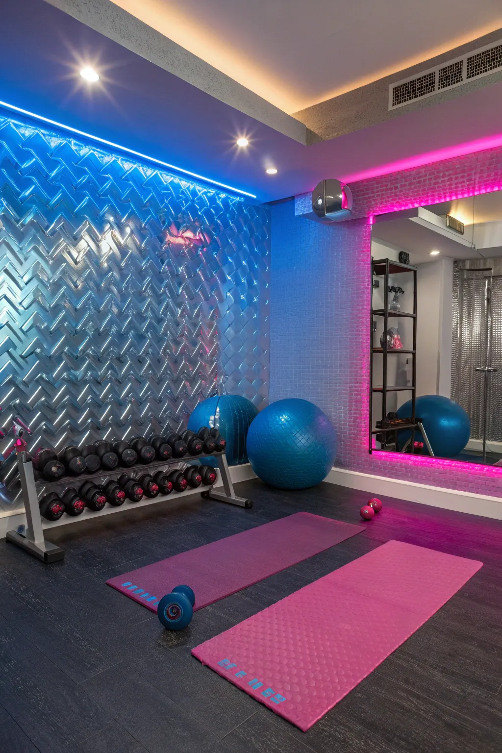 Incorporate metallics for a sleek and modern touch. These shimmering hues can add a dash of luxury and energy to your workout space.
